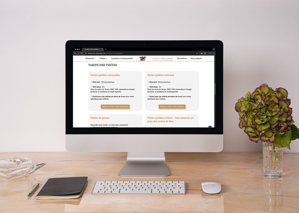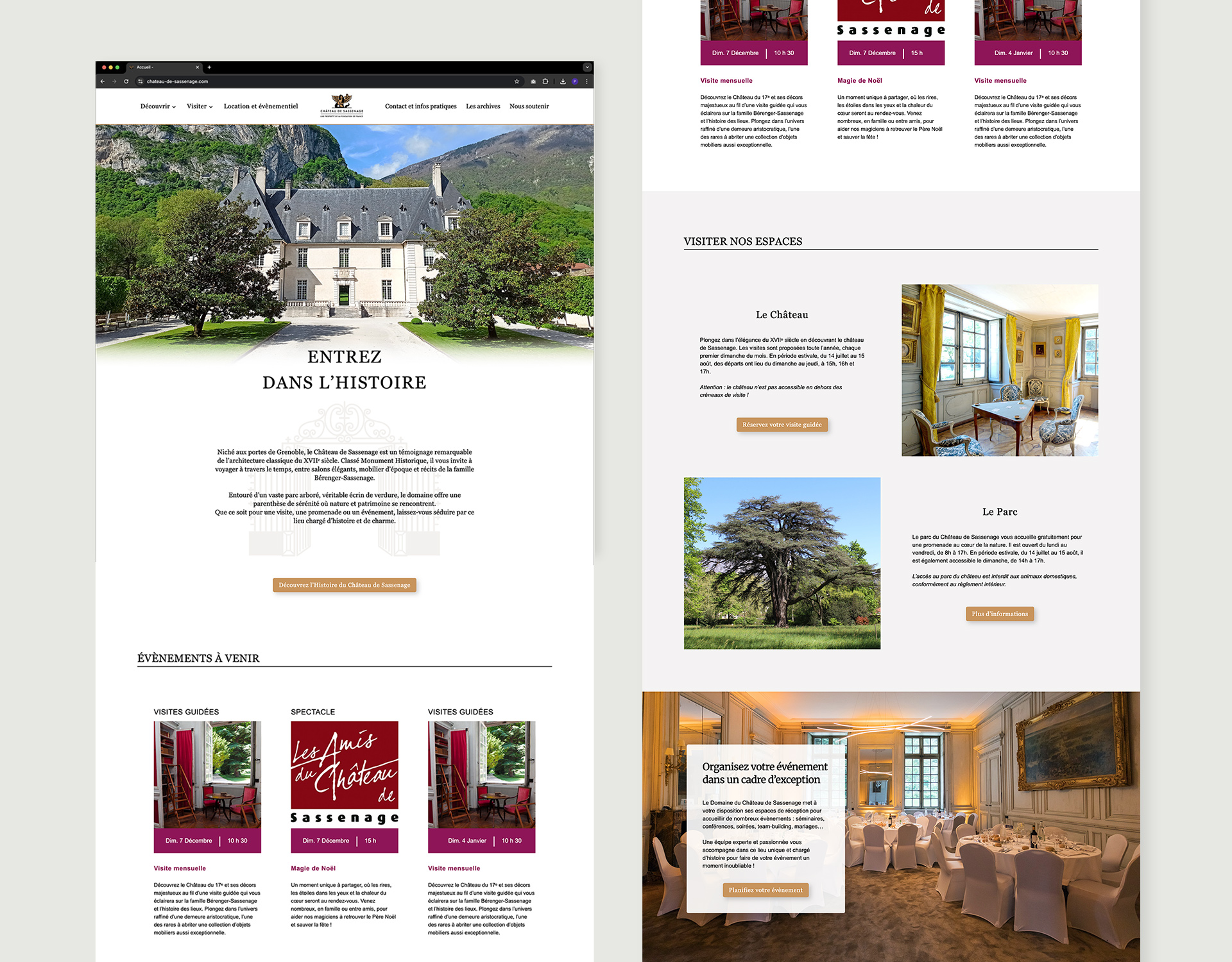 L’objectif : offrir une expérience en ligne fluide, facile à utiliser et fidèle à l’élégance du lieu. Un design sobre et simple, pensé pour mettre en valeur le château, ses espaces et son histoire.